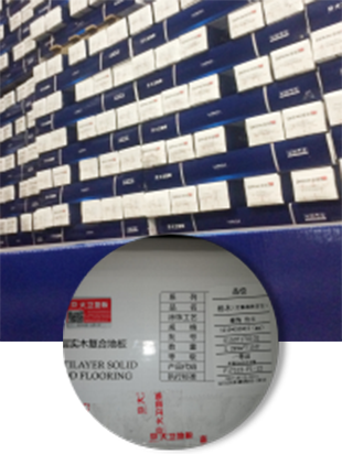 大卫地板产品包装纸箱唛头上包括有公司名称、地址、联系电话、等级、生产许可号、执行标准等信息,且每一包纸箱上都贴有专业的防伪标签,确保地板货源真假。