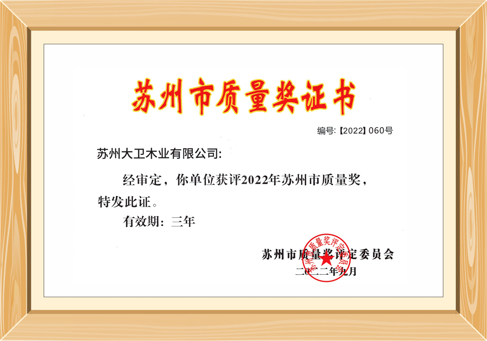 近期,江苏省苏州市质量奖评定委员会公布了2022年苏州市质量奖获奖组织名单,苏州大卫木业有限公司榜上有名,大卫始终坚持质量强企发展战略,加强产品质量管控,为市场提供精品优品,公司紧跟国家供给侧改革方向,以提高发展质量和效益为中心,积极开展管理转型升级,实施质量品牌提升行动,塑造企业质量文化,并成功引入卓越绩效管理模式,企业质量工作向秩序化,规范化,精品化方向深入拓展,苏州市质量奖是指苏州市政府设立的企业经营性质量管理领域的荣誉,目的在于引导,激励企业以两个国家标准GB/T 19580《卓越绩效评价准则》和GB/Z 19579《卓越绩效评价准则实施指南》推进开展卓越绩效管理模式,提高核心竞争力和公司品牌的知名度,在产品,服务等领域取得明显成效 宅男视频在线,在创新质量管理,提升供给质量方面具有显著示范带动作用的企业才能获评。