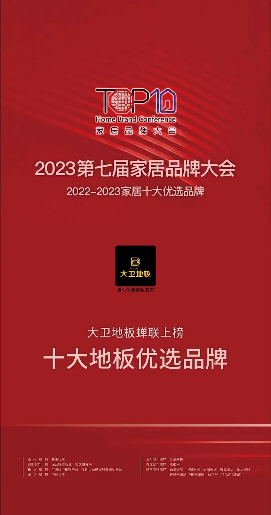 7月27日,一年一度备受关注的家居行业品牌盛会——2023第七届家居品牌大会在北京启幕,来自家居企业,行业协会 宅男视频,合作媒体的400余位大咖汇聚香山饭店,共同探寻家居行业新形势下“重构&融合”的变革路径,大卫地板连续5年上榜“十大优选品牌”,成为这个年度里地板领域创新发展的代表性品牌。