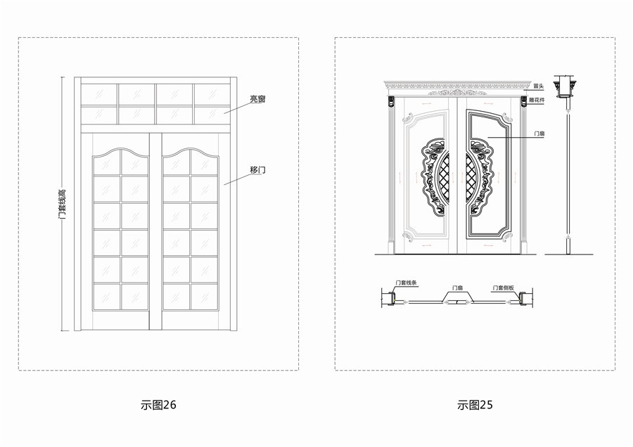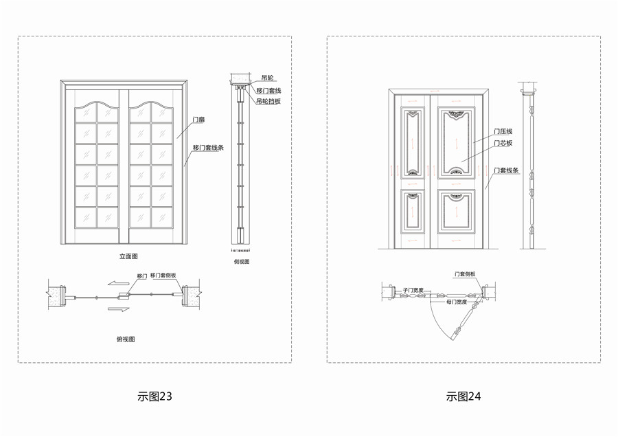 2. 移门套(推拉套):用于包裹洞口并固定门扇推拉的称为推拉门框;(示图23) 宅男视频在线.